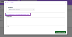 Cuando habilitamos la Política JUSCON, Argo entiende que cada vez que solicitemos una continuación de viaje, esta tendrá que ser justificada.