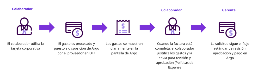 A través de la integración automática de gastos, los consumos de tu empresa se integran diariamente en Argo, en el intervalo D+1, según la disponibilidad del proveedor de la tarjeta.