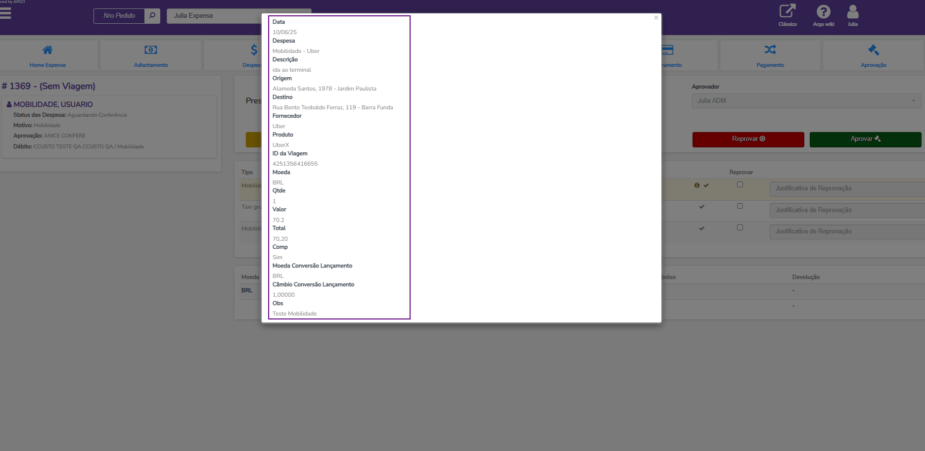 Esses mesmos dados também estarão disponíveis para o conferente e o aprovador nos detalhes da despesa.